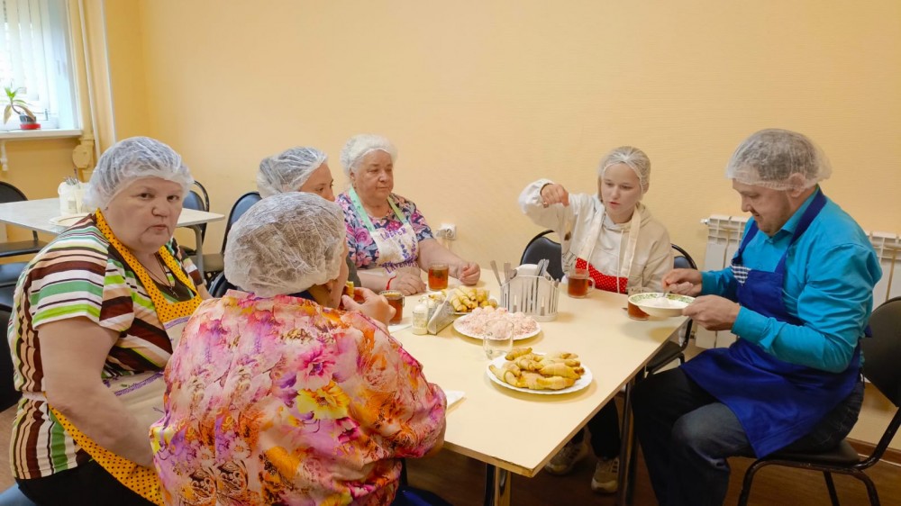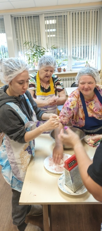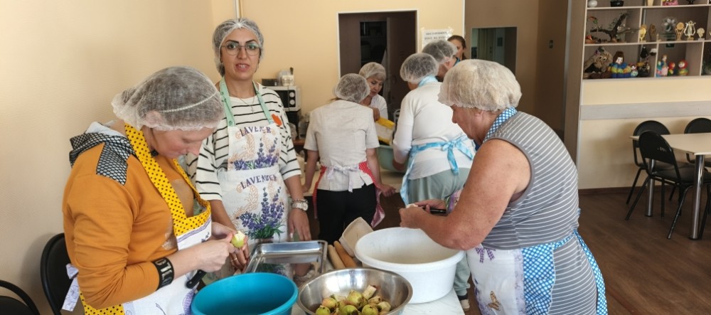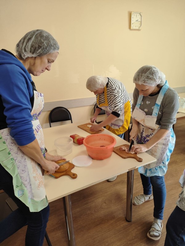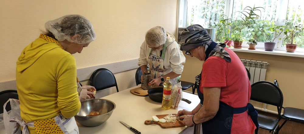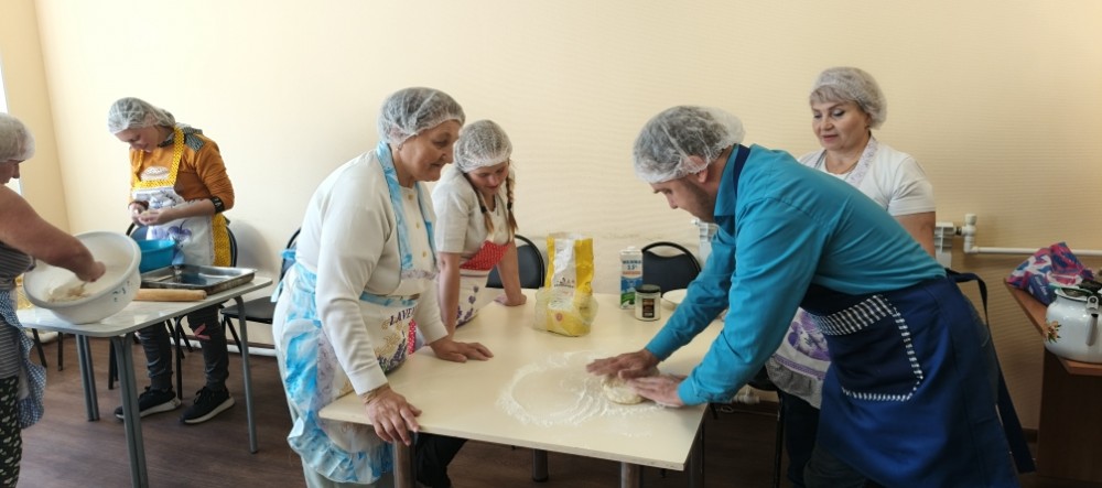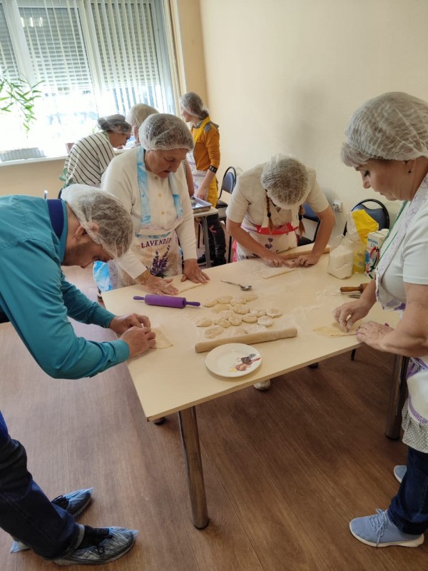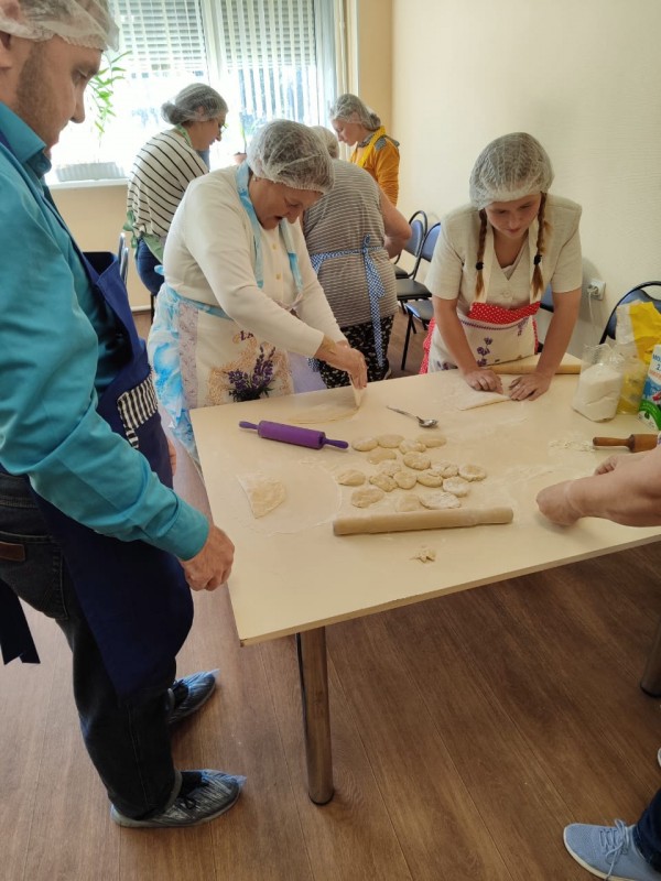 Проект уже во всю успешно реализуется! Спешим поделиться с Вами фотографиями. На которых видно, как старшее поколение с любовью и заботой передает свой опыт и мудрость. А молодежь с благодарностью принимает его и обучается навыкам приготовления пищи и ведения домашнего хозяйства.