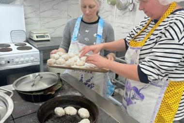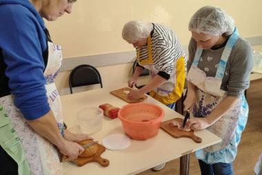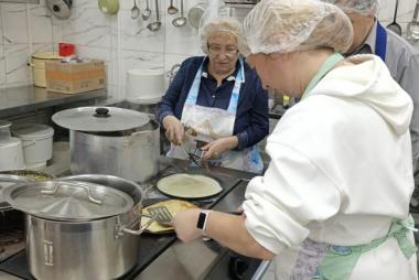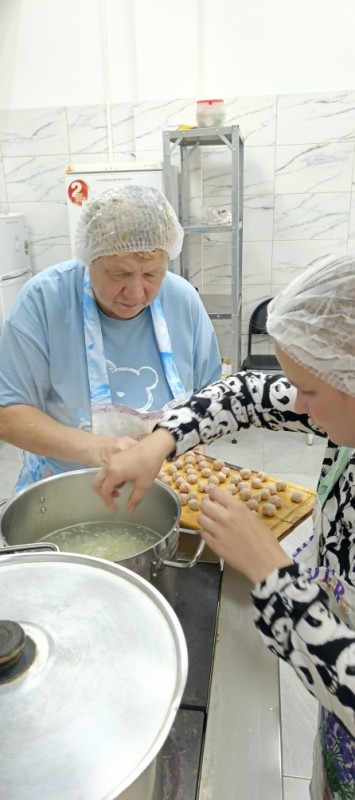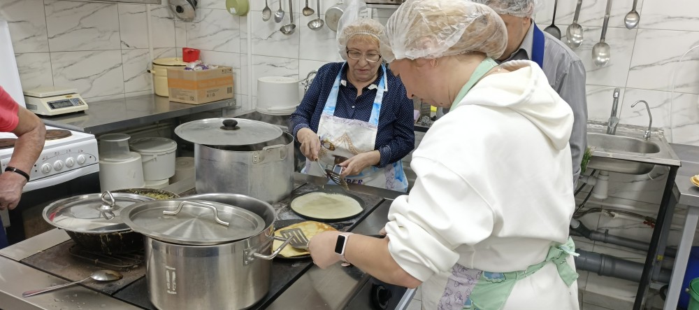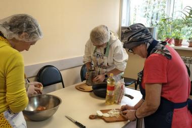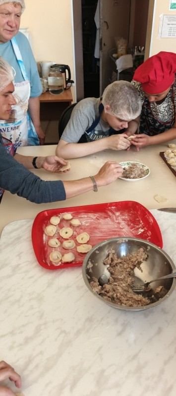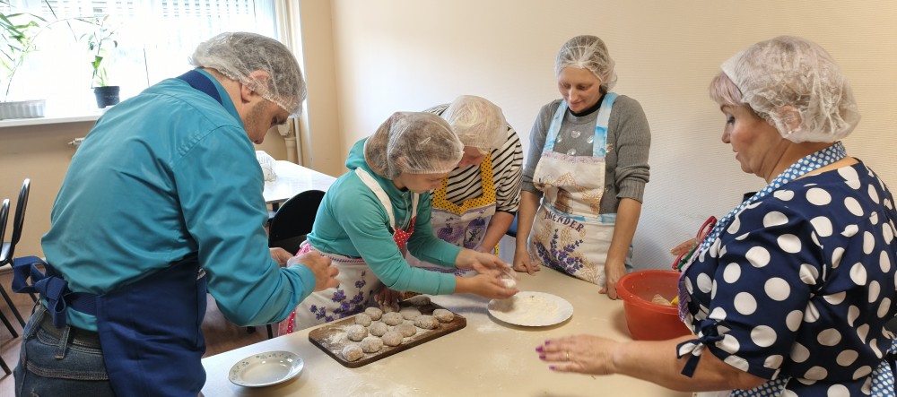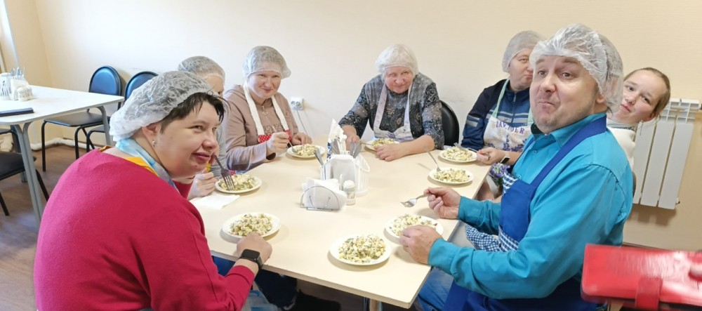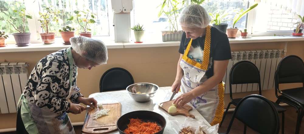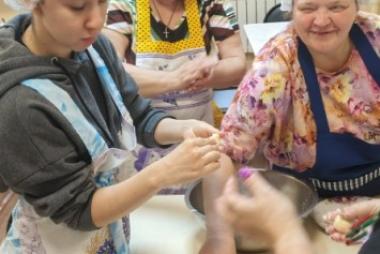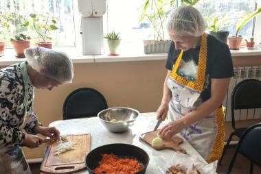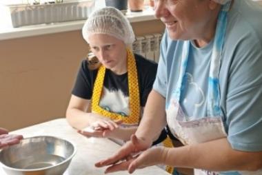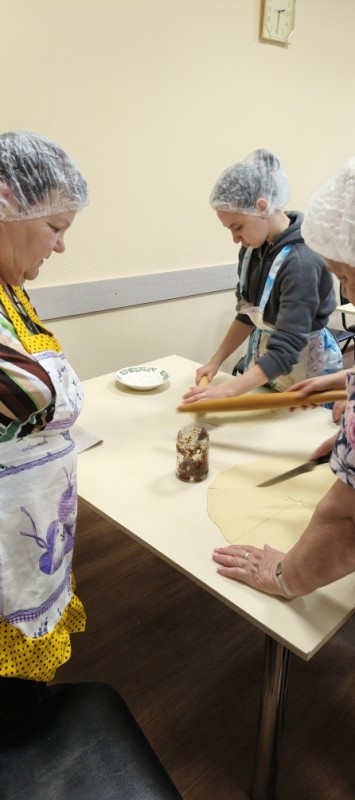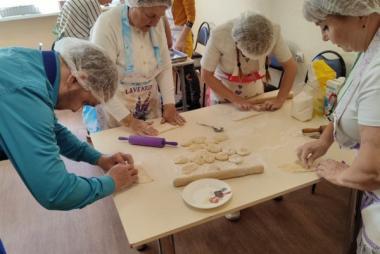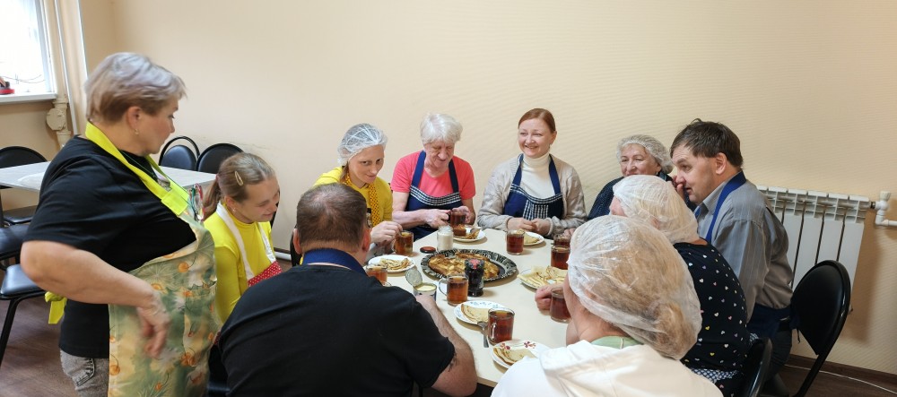 Проект уже во всю успешно реализуется! Спешим поделиться с Вами фотографиями. На которых видно, как старшее поколение с любовью и заботой передает свой опыт и мудрость. А молодежь с благодарностью принимает его и обучается навыкам приготовления пищи и ведения домашнего хозяйства.